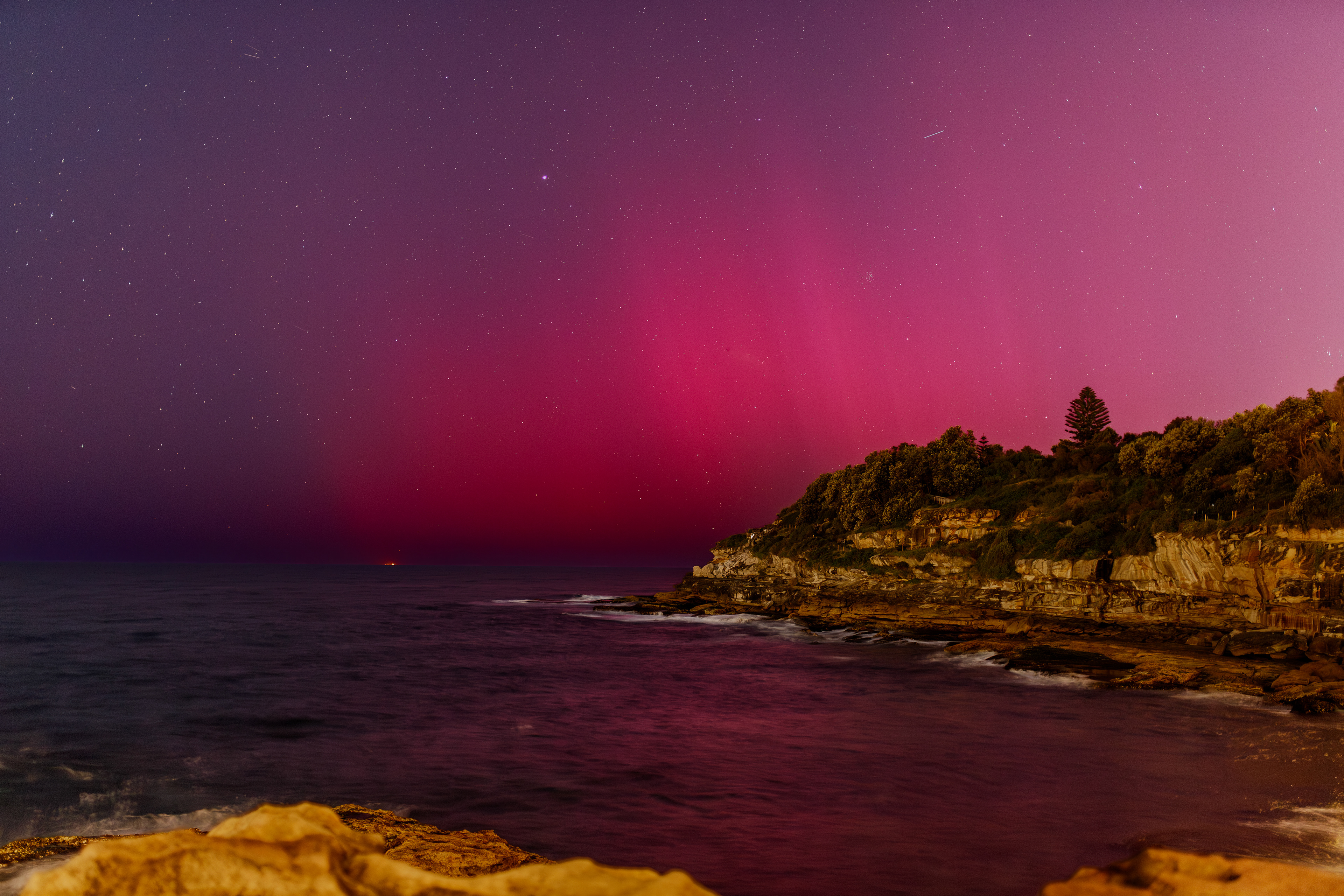 The Aurora Australis following a G4 storm on Nov. 12, 2025, captured right off Bondi Beach in Sydney Australia.
